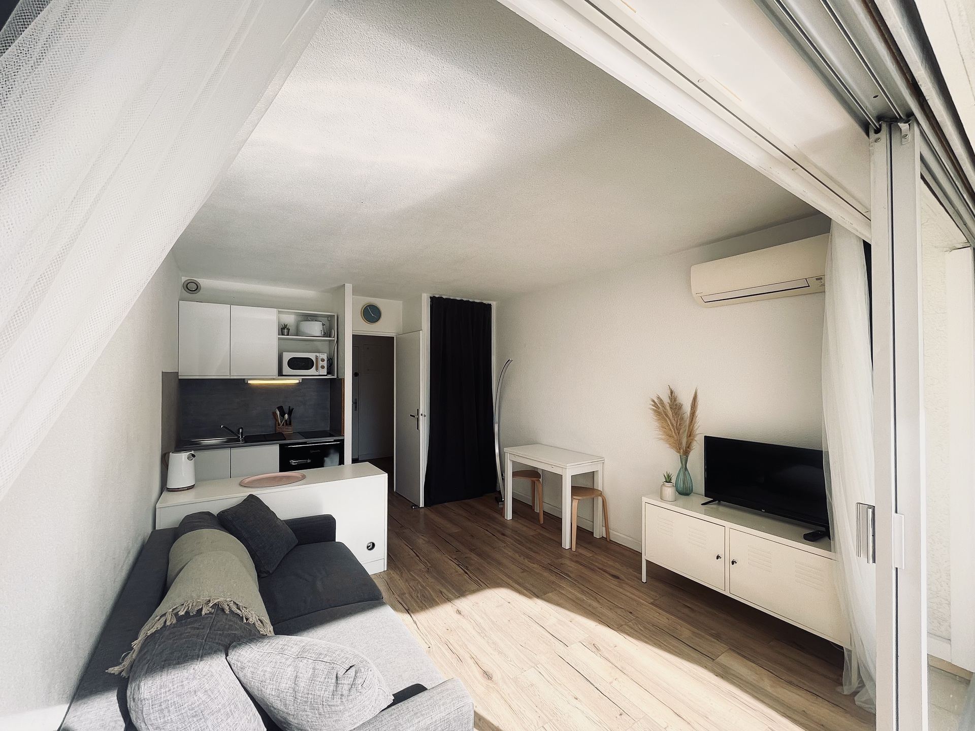 Deux pièces cabine avec climatisation dans résidence avec piscine